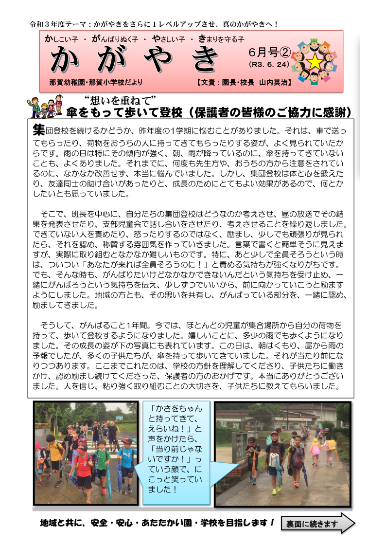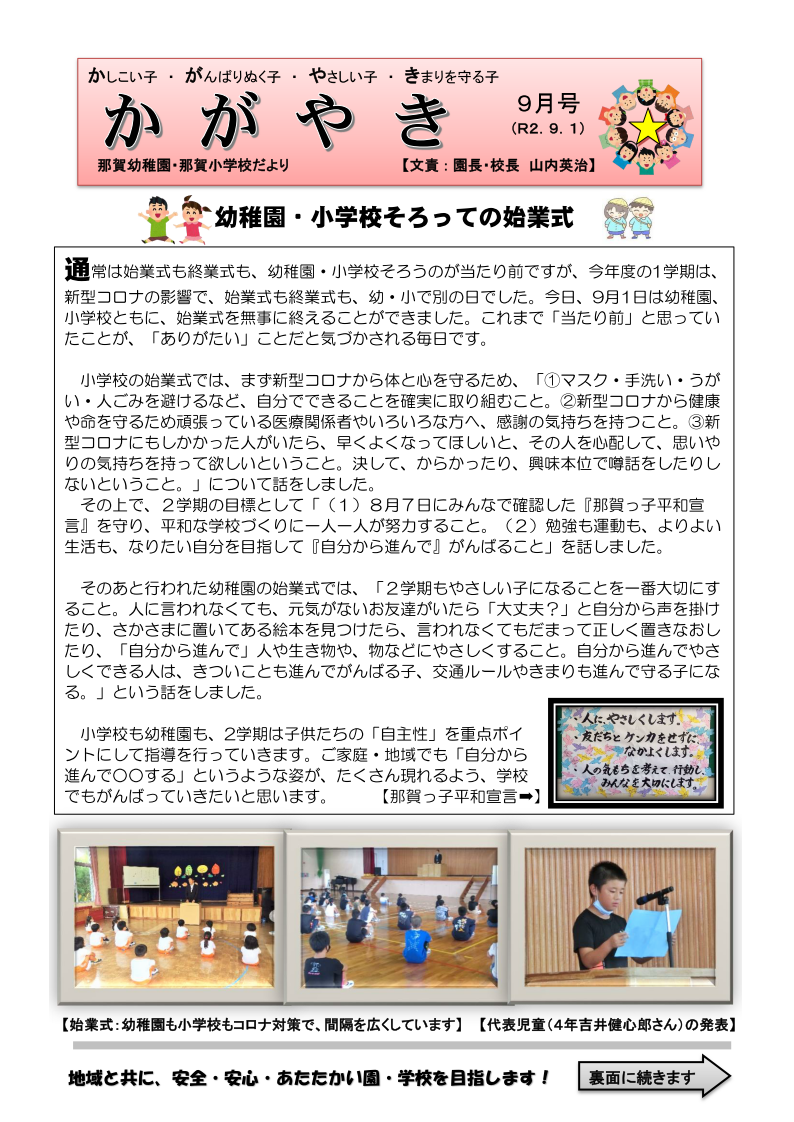 「知」「徳」「体」を鍛え、たくましい那賀っ子を育みます。
